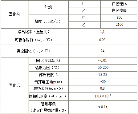 本产品为有机硅材料,具有优越的抗高低温特性和抗紫外线、抗老化性能、高导热性能、优越的介电性能和极佳的化学稳定性。本品应力小,可拆卸,方便返修。室温固化,高温使用。